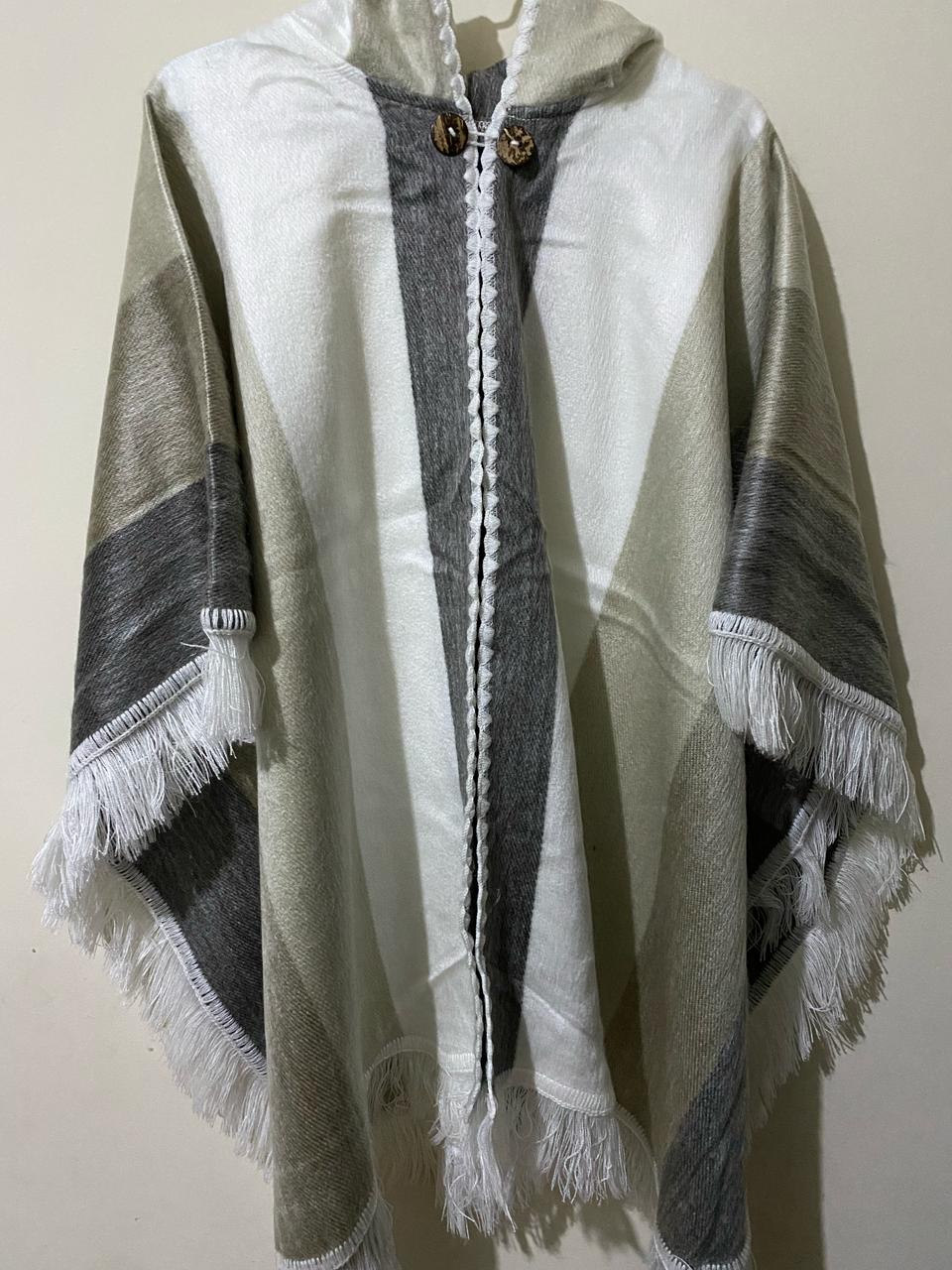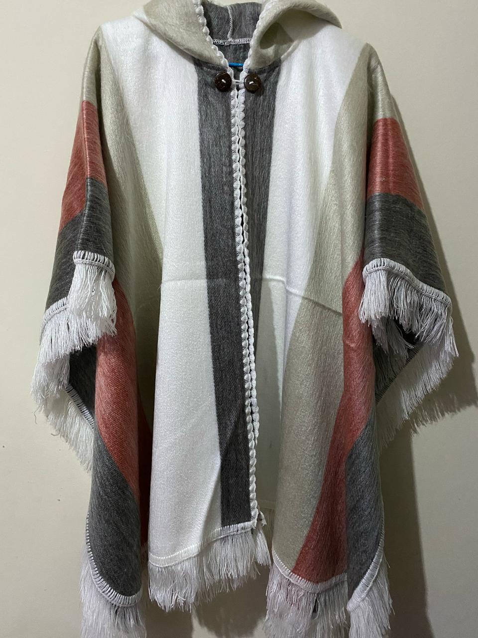 Poncho con capucha y cuello redondo, tejido en lana de ALPAKA 100% natural.